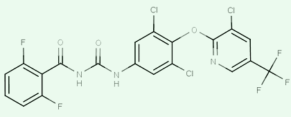 苯甲酰脲類昆蟲(chóng)生長(zhǎng)調(diào)節(jié)劑。廣譜性殺蟲(chóng)劑,以胃毒作用為主,兼有較強(qiáng)的觸殺作用,滲透性較差,無(wú)內(nèi)吸作用??梢种茙锥≠|(zhì)形成,阻礙害蟲(chóng)正常蛻皮,使幼蟲(chóng)蛻皮、蛹發(fā)育畸形,以及成蟲(chóng)羽化,產(chǎn)卵受阻,從而達(dá)到殺蟲(chóng)的效果。對(duì)多種鱗翅目害蟲(chóng)及雙翅目、直翅目、膜翅目害蟲(chóng)有效。還可用于甘藍(lán)、棉花、茶樹(shù)、果樹(shù)的多種害蟲(chóng)。
